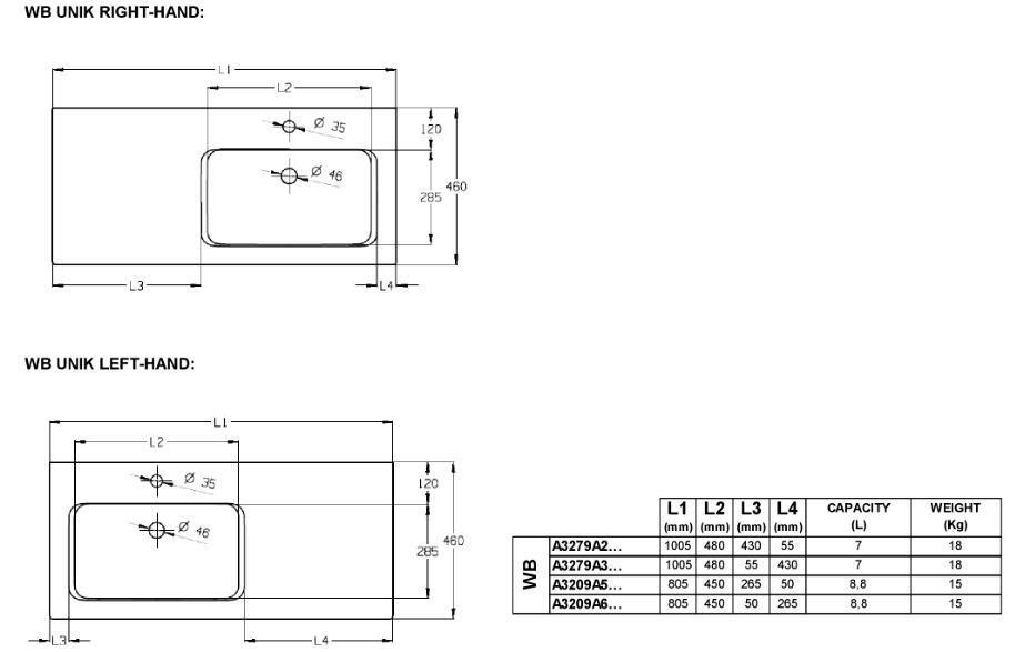 THE GAP раковина мебельная 1000, правая
